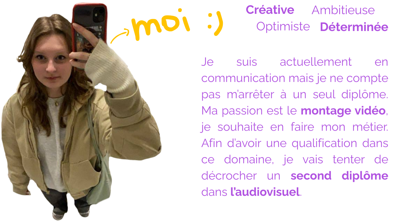 L’artiste derrière l’art, c’est moi. Une étudiante qui a des idées à revendre, des rêves pleins la tête et un seul mot d’ordre :
